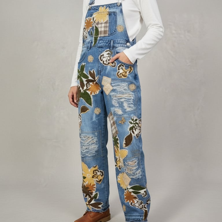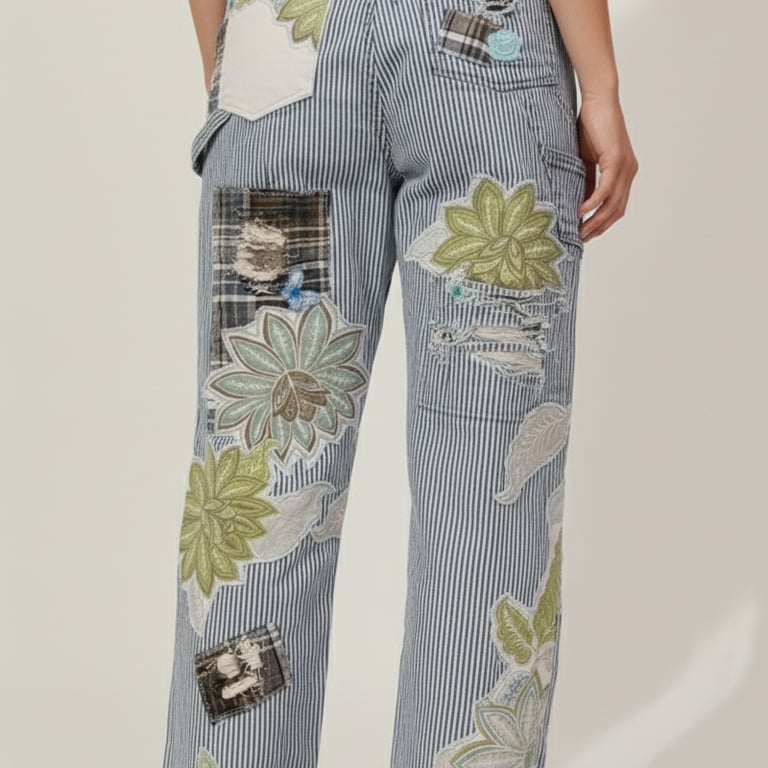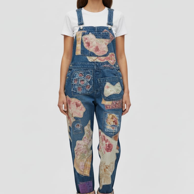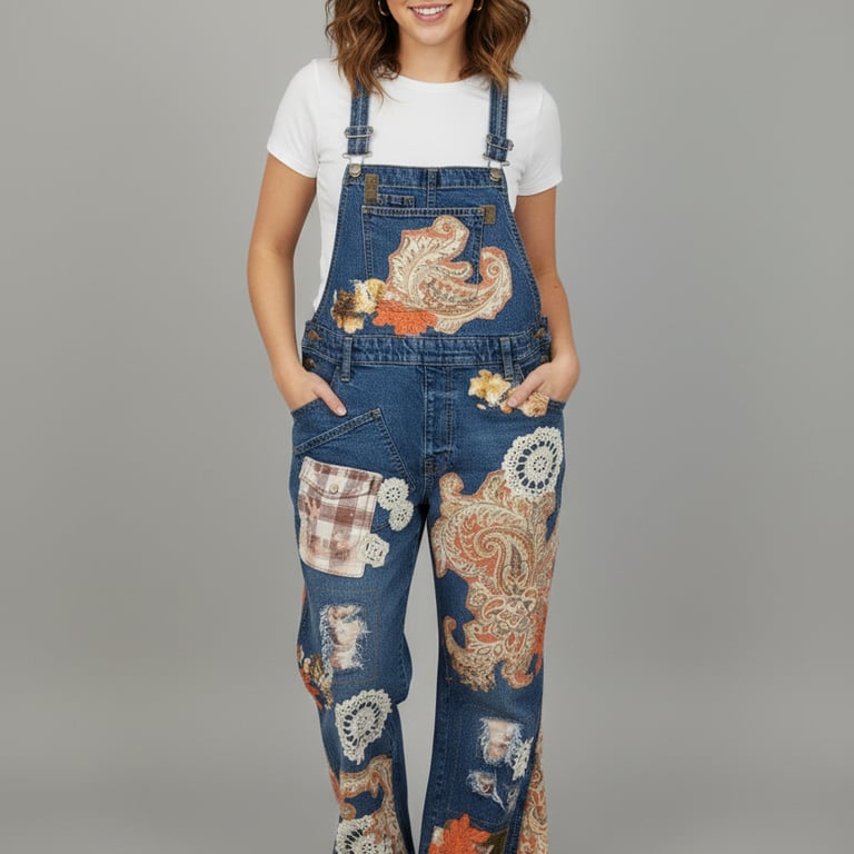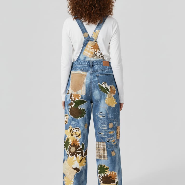 Just a few samples of our upcycled overalls, pants, jackets and shorts.