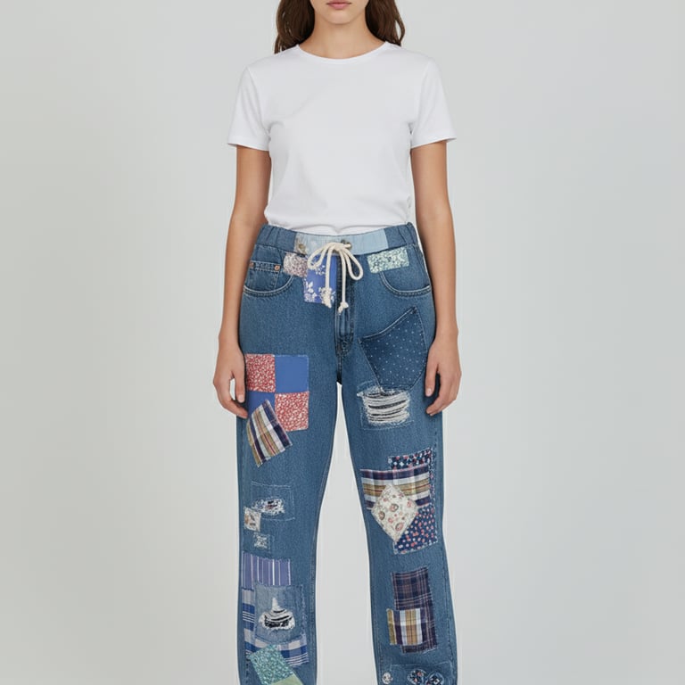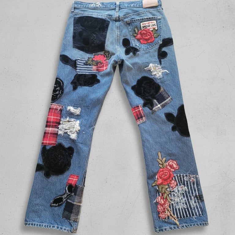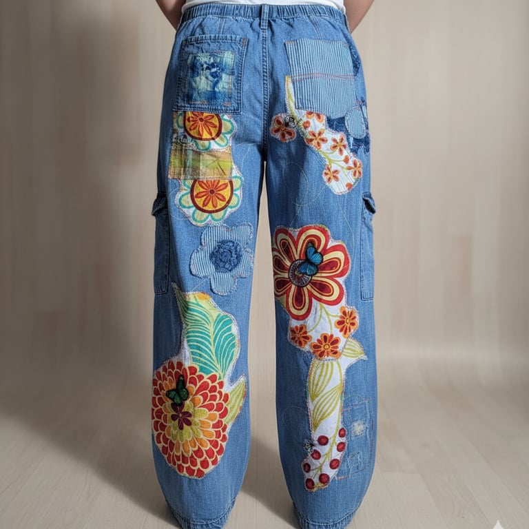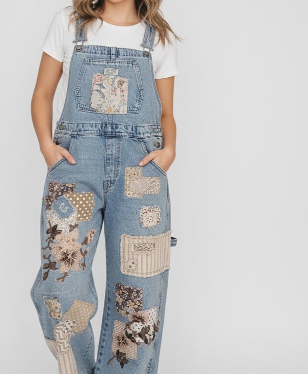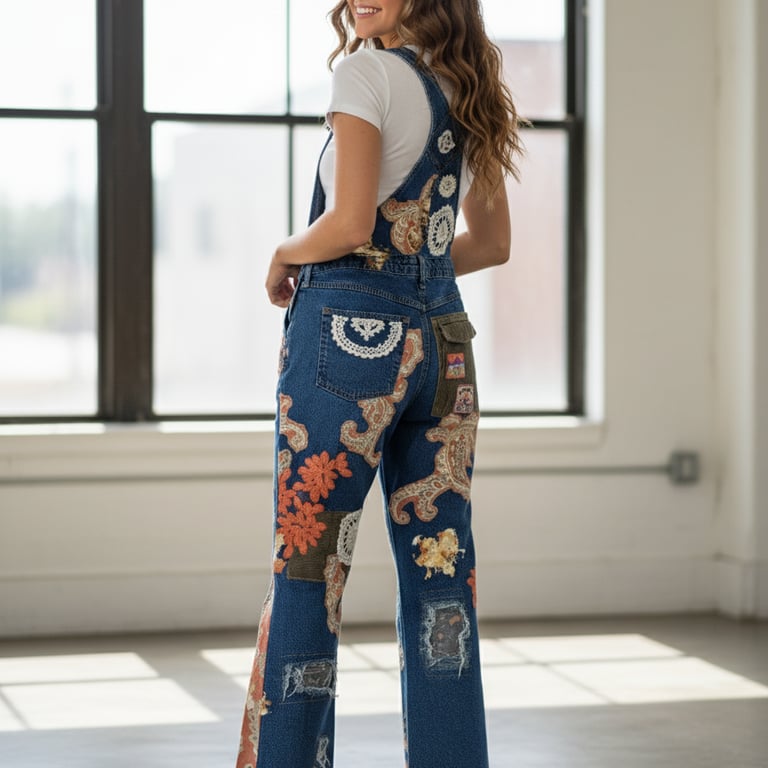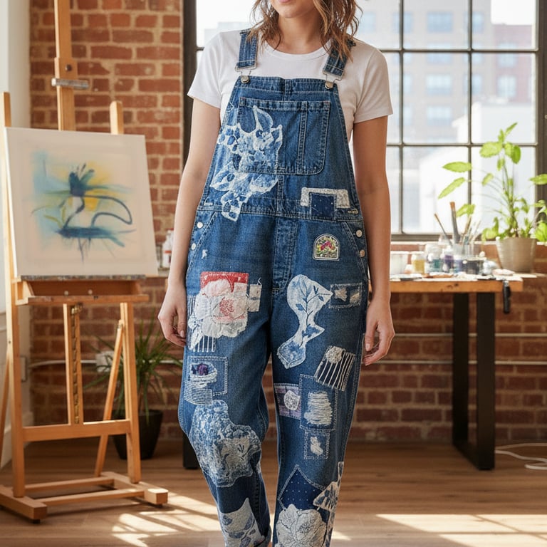 Just a few samples of our upcycled overalls, pants, jackets and shorts.